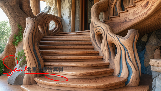 水泥仿木臺階制作-北京廠家水泥仿木臺階設計制作