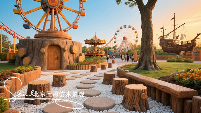 北京怡和山莊用仿木制作的別墅庭院景觀工程